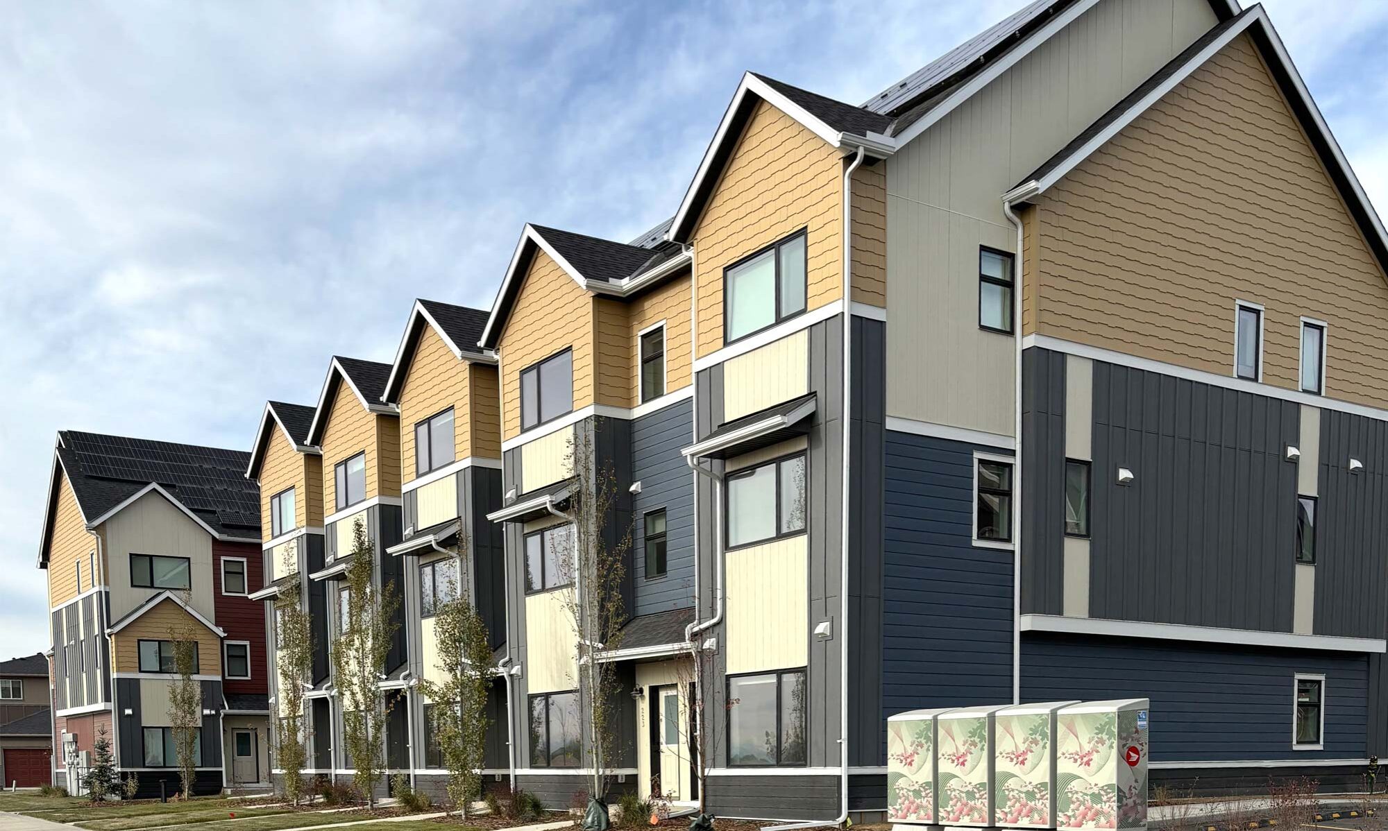 Sol Verde at South Shore in Chestermere is home to 64 Net Zero and Net Zero Ready townhomes certified by the Canadian Home Builders’ Association (CHBA) Net Zero Home Labelling Program. This is the largest Net Zero multi-family community in Southern Alberta. These CMHC-approved affordable rental housing units are a welcome addition to the local rental market for families and for those who require barrier-free or wheelchair accessible homes.